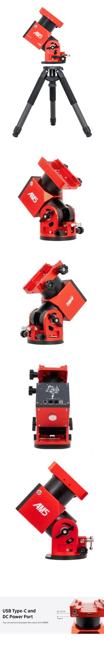 L'AM5N utilizza la tecnologia robotica, non richiede contrappesi fino ad un peso del telescopio di 13 kg. Ciò rende l'AM5N più leggera, più compatta e più facile da usare. Supporta quindi telescopi fino a 15 Kg senza contrappesi e telescopi fino a 20 Kg con contrappesi necessari per mantenere in equilibrio montatura e treppiede (il contrappeso e l'asta del contrappeso sono opzionali).