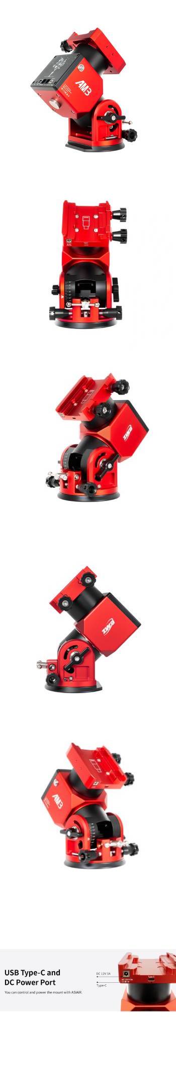 La montatura AM3N è l'upgrade della precedente AM3; il corpo è stato ottimizzato per una migliore portabilità e gestione dei cavi. Migliorie nell'alimentazione che ora includono sia una porta di uscita Type-C che una porta di uscita 12V CC, contribuendo ad eliminare l'ingombro dei cavi e riducendo il rischio di grovigli: niente più cavi aggrovigliati! Ora è dotata di una chiave esagonale magnetica che si fissa saldamente al corpo del supporto, garantendo un comodo accesso e una comoda conservazione.