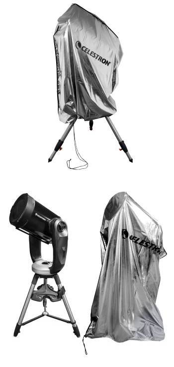 Celestron presenta un telo di copertura per telescopi completamente impermeabile con doppio strato con interno in poliestere e superficie esterna argentata. Ideale per la protezione della strumentazione dagli agenti atmosferici.