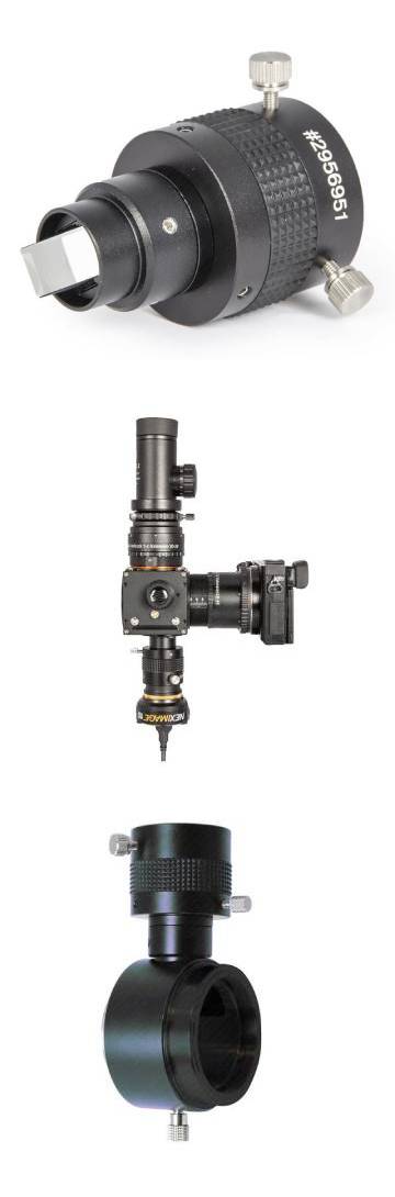 Entrambe le soluzioni sono realizzate con lavorazioni CNC ad alta precisione e tolleranze estremamente ristrette, garantendo stabilità strutturale, ripetibilità di montaggio e perfetta ortogonalità del treno ottico. La possibilità di regolazione fine del prisma e del fuoco della camera guida consente un'ottimizzazione accurata del sistema in funzione della configurazione ottica utilizzata. L'integrazione nel sistema modulare Baader T-2 permette inoltre di realizzare catene ottiche compatte, riducendo il backfocus complessivo e facilitando l'inserimento tra correttori, adattatori e sensori.